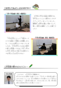 小学1年生国語の様子と中学2年生最後の授業の様子が掲載されています。